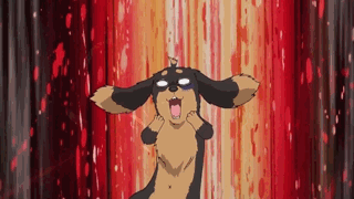 Besides the gag reactions, and a color scheme reference to Edvard Munch's The Scream (or even Garry Larson's The Howl; a wiener dog is the star of the show you know), I spent too much thinking about how the show's creator used the word 使い (tsukai) in the title. Is the dog (who is a reincarnated fan of the author character Natsuno) a familiar spirit and the pair of scissors a tool? Is the speaker of the title (presumably the Natsuno) proclaiming she uses both a dog and a pair of scissors like tools? Maybe both? Oh, Japan...
