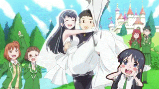 After learning that boys seem to like long, black, silky hair, Maki goes a little overboard making up plots to show off her own hair. Her mother finds her notebook, and realizes she's been way too sheltered and may be developing a wrong idea about how to talk to boys. I do believe that's the whole premise of the show, Mom. So she get Maki's dad to send her to his friend's cram school, since her tutor is quitting to get married soon anyway. Nice timing. And it looks like Maki really needs to practice talking to boys.