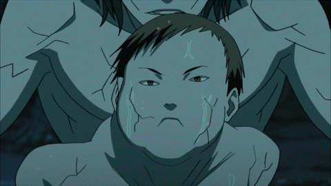 Sasuke Shippuuden - Episode 8. Itachi catches Kabuto in his Genjutsu loop. Kabuto thinks he put up a good fight, but that's why he'll stay in that loop a good long while.
