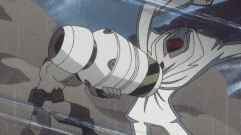 The reason I bring up these names now, and their evocative homonyms, is that even though the show is focused on what the Resistance has been trying to build for the past month since the attack at the stadium, Revocs has also been busy. Ragyo and Harime have been building their next life fiber masterpiece, Shinra Koketsu (神羅膏血). We haven't been given the kanji yet of this new suit, but I'm guessing it's these characters, which mean The Divine Silk's Spoils of Sweat and Blood. Koketsu also has many homonyms, including purity, nobility, jaws of death, tiger's den, sclerosis, hardening, even a type of tie-dyeing from the Nara period. Again, all evocative, but the one that matters is the one with the blood character. Since this suit will be made from original life fibers, instead of the artificial ones like Senketsu, if Satsuki is to be made to wear it, she must become a sexual being. This is the subversive message that Kill la Kill added to their take on magical girls wearing sailor suits: their sexuality adds to their power. Of course, dirty old men aren't supposed to think like that about teenage girls, so... Let's have over the top explosions and comedy to distract you!