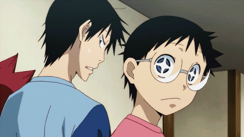So, Perm-guy miscalculated, he went to chase after Onoda, started cramping up, and Imaizumi and Naruko passed him by. Quiet-guy was doing his job, and came up to him right on schedule. He pauses, and reminds Perm-guy that they promised to get to the Inter-High race together. With morale restored, they take off together, with Quiet-guy doing the pulling. Their extra close pace-line has to have a title, this being a sports club anime and all: Synchro Straight Twin. Yeah, Tadokoro should stick to food clinics instead naming cycling techniques.