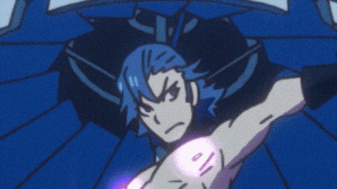 Our two deep breaths are over. The starter's pistol has gone off. Now we run! With shocking familiarity, Satsuki asks Aikuro (calling him by his first name with the -san honorific, and addressing him with the familiar/romantic "you" (あなた - anata is also used by wives to address their husbands, like "darling" or "sweetheart"), to take over command of the ship while she and Ryuko fly off to handle Ragyo and her Big Ball of Yarn. Aikuro knows how to address the troops.