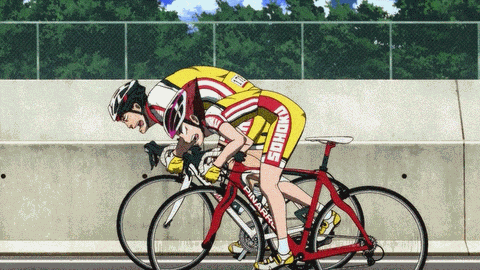 Unfortunately, a touch of the brakes right before the line is all you need to lose. Tadokoro and Naruko, proving that when nobody has any advantage over the others, it comes down to feelings, or passion, or who wants it more, take their feelings, and their blunt spears and ram right through the cones. Lucky for them, the cones had bounced high enough to avoid their front wheels, but that means taking the polyurethane right in the face. Tadokoro takes the sprint line by less than half a wheel length over Naruko. Big lungs beat aerodynamics this time around, and they both beat abs.