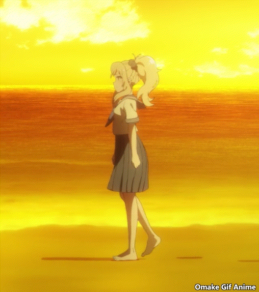 Nodoka walks the beach during Golden Time. Normally I'd just have two scenes from each of the girls' end credit sequences, but we had a lovely shot of Mai's legs, so...