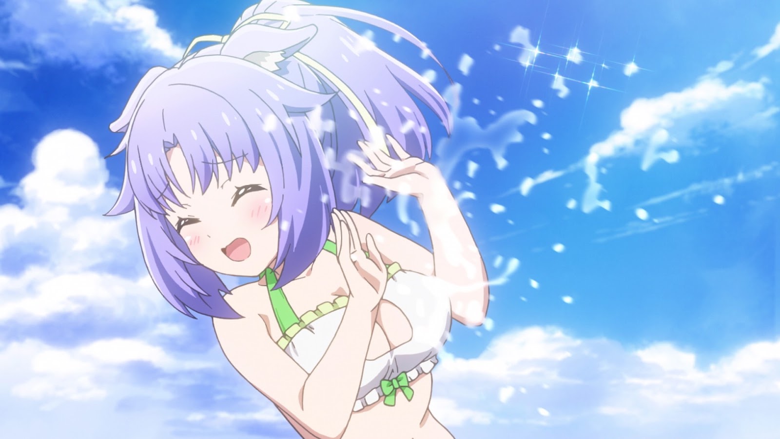 It's summer! It's the beach! It's a cat paradise! That’s what Nekopara means, if you didn’t know that by now. Here's the big swimsuit reveal. Cinnamon wears the swimsuit version of neko lingerie. Lots of nice cat themes. Beach episode montage. Shigure is having a very nice time. Vanilla liked her Tunnel of Love made from sand. She's quietly as dirty minded as Cinnamon. Har. Cacao instinctively goes after Cinnamon's watermelons.
